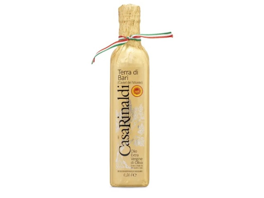Extra panenský olivový olej Terra di Bari DOP (500 ml) – Casa Rinaldi je vynikající italský olivový olej s chráněným označením původu DOP, pocházející z regionu Puglia (obalsti Castel del Monte). Vyrábí se výhradně z odrůdy Coratina, jedné z nejceněnějších italských oliv.